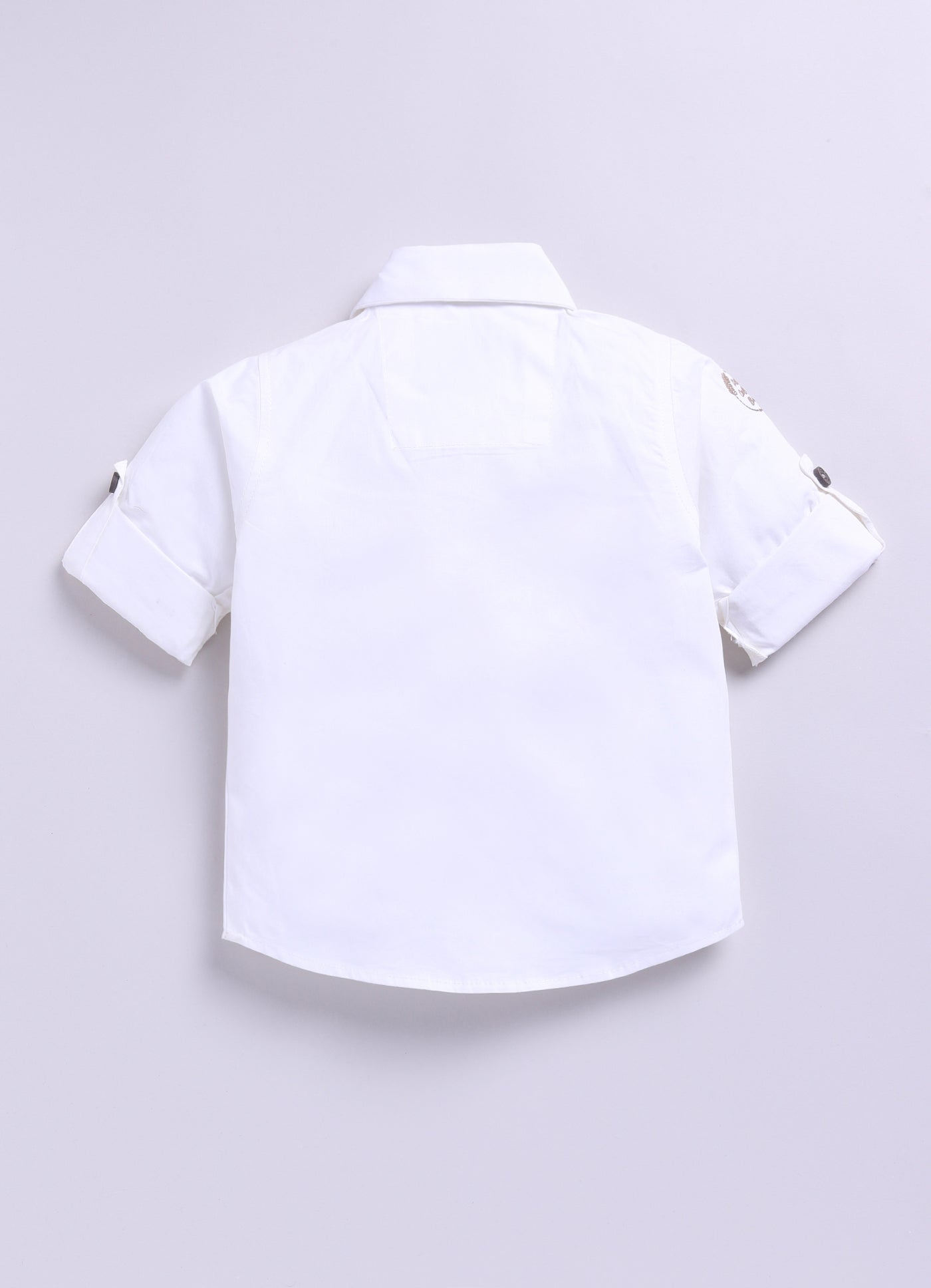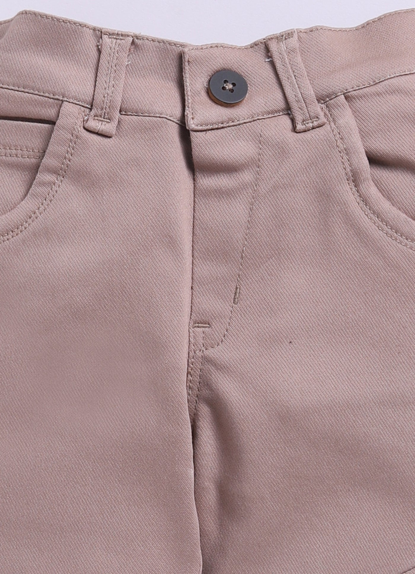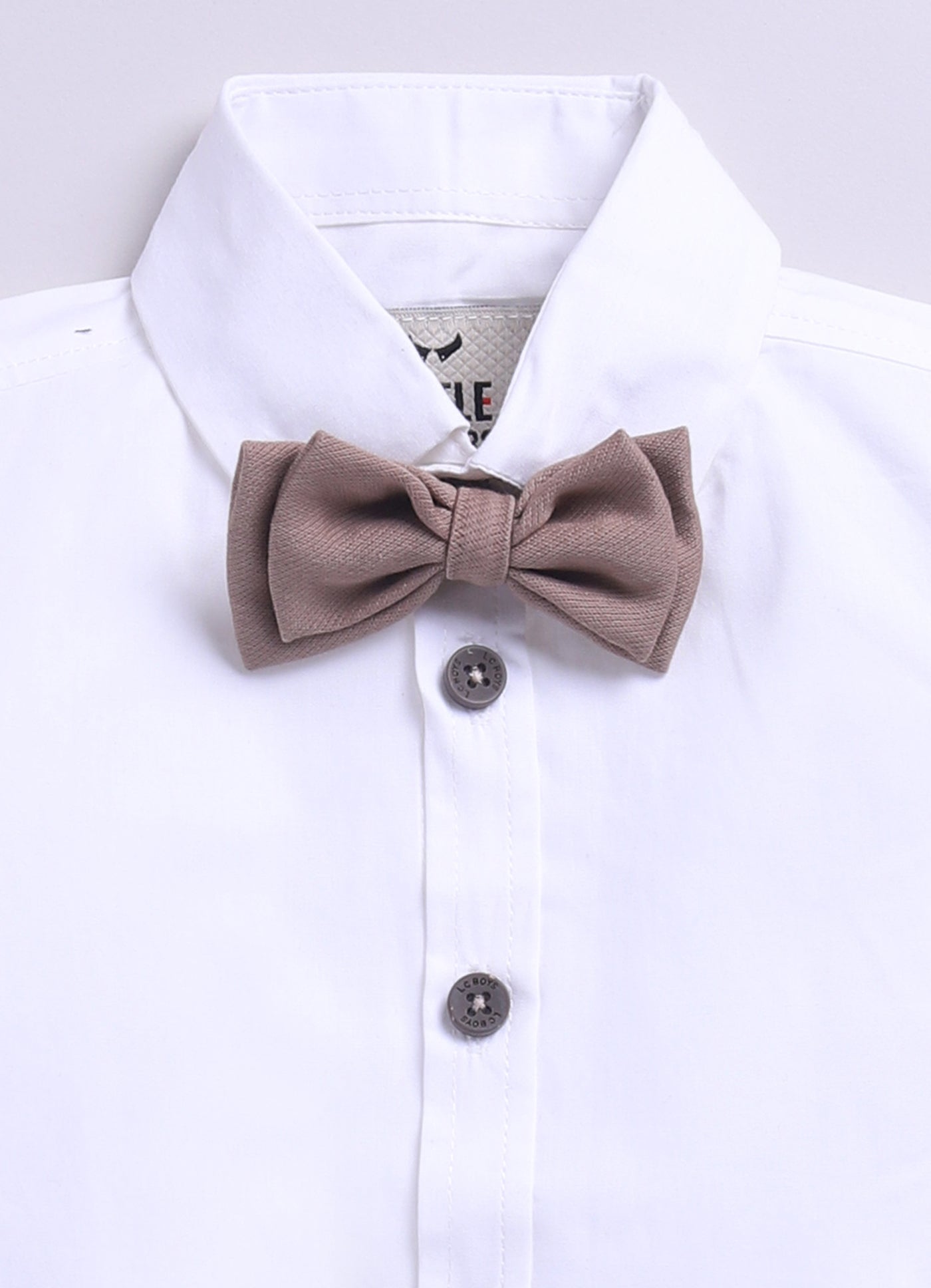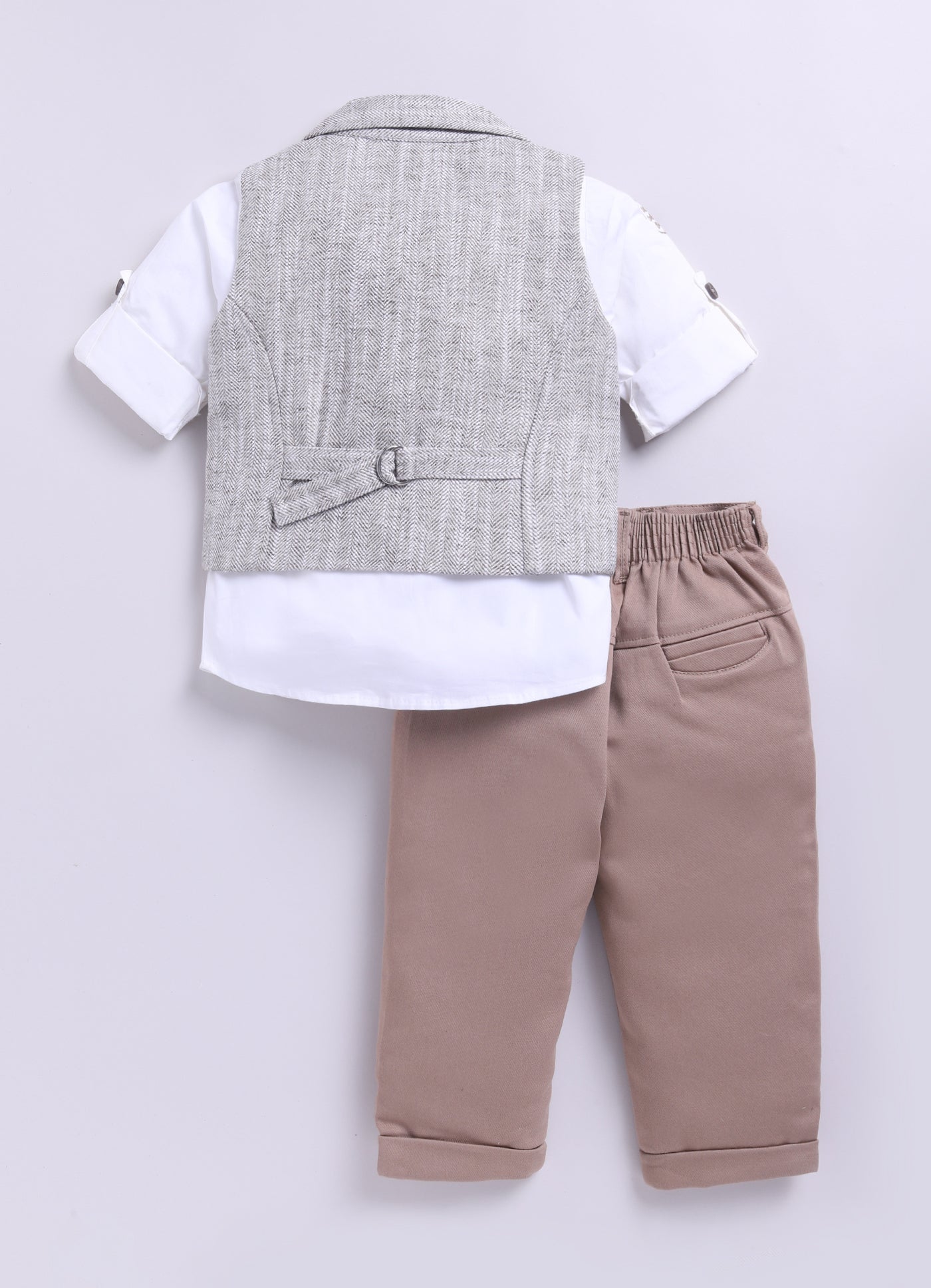 Beige Adorable Woven Waistcoat Full Sleeves Shirt Pants Set with Bow