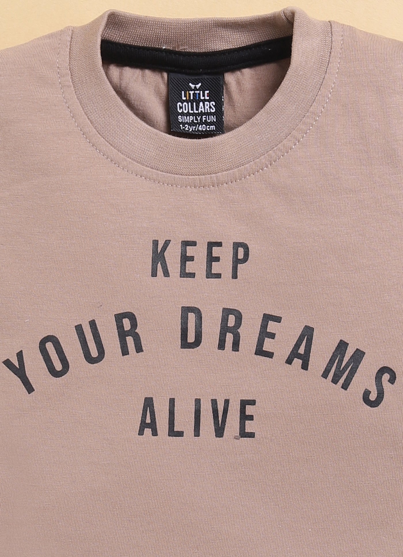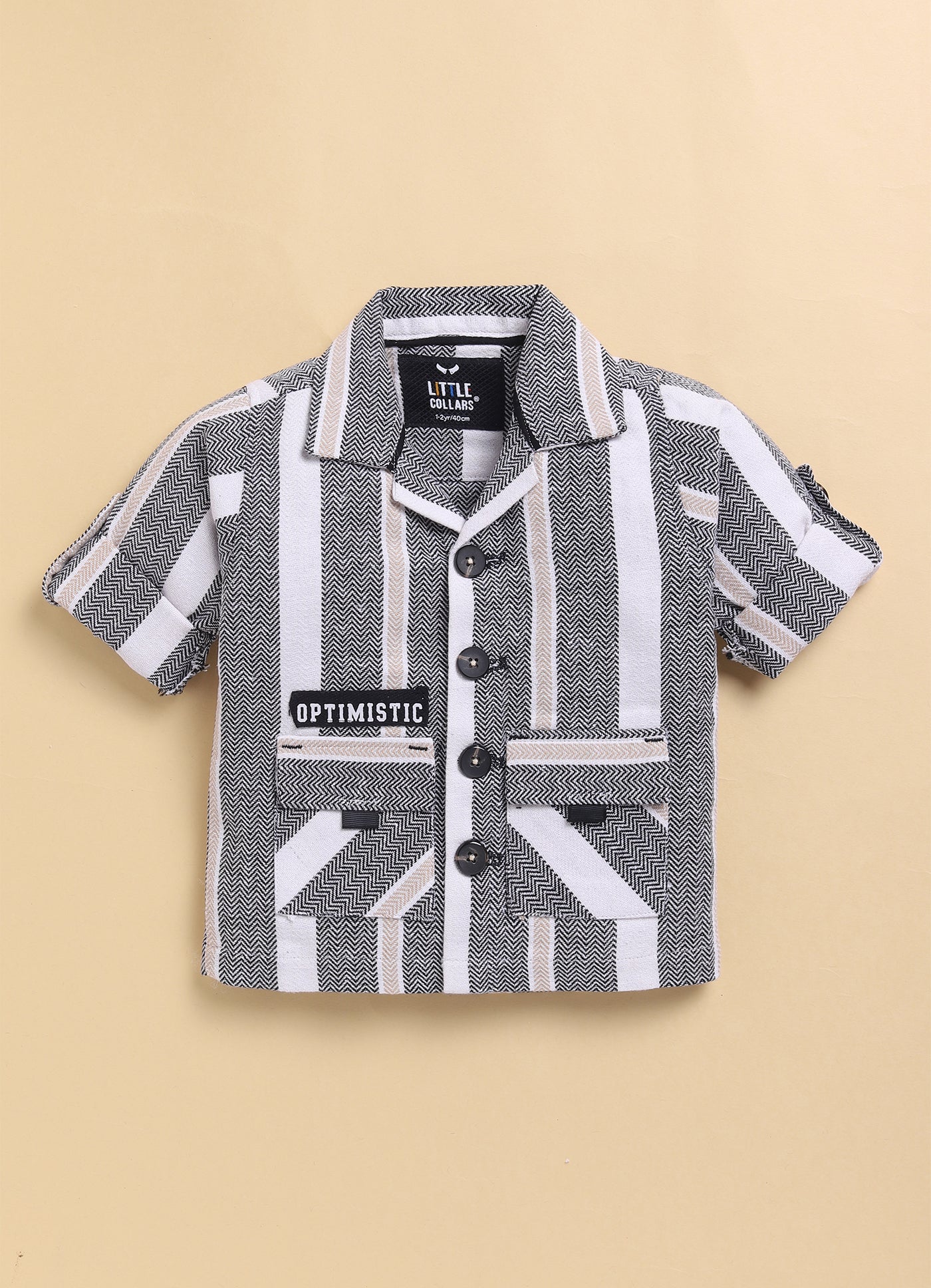 Casual and comfortable three-piece outfit for a young boy, perfect for everyday wear or playtime. The color scheme gives natural and earthy feel. The focal point is the organic recycled cotton overshirt with full sleeves. It features a button-up closure, front pockets . A writeup tshirt adorns the chest, adding a playful touch. The outfit is paired with a pair of comfortable pants.