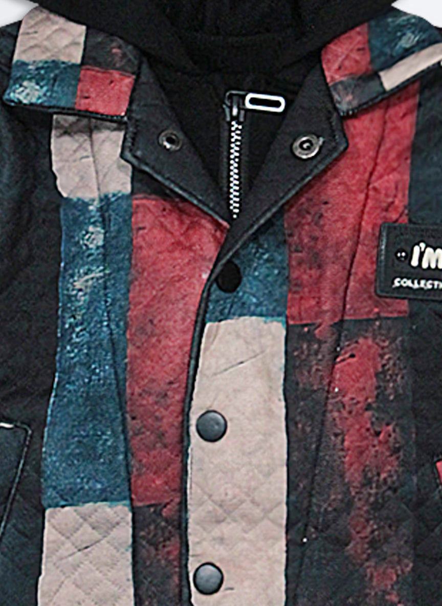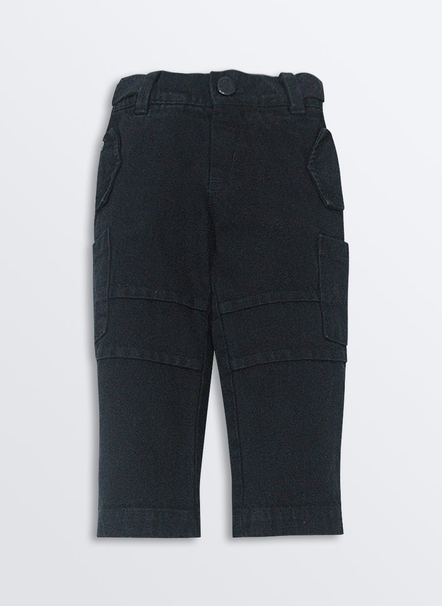 This stylish and cozy outfit features- A full sleeves jacket with abstract print hoodie and double look attached jacket for warmth and style. Comes with a printed t-shirt. Cargo pants with pocket accents for a trendy and functional look. Perfect for a casual yet fashionable winter or fall look!