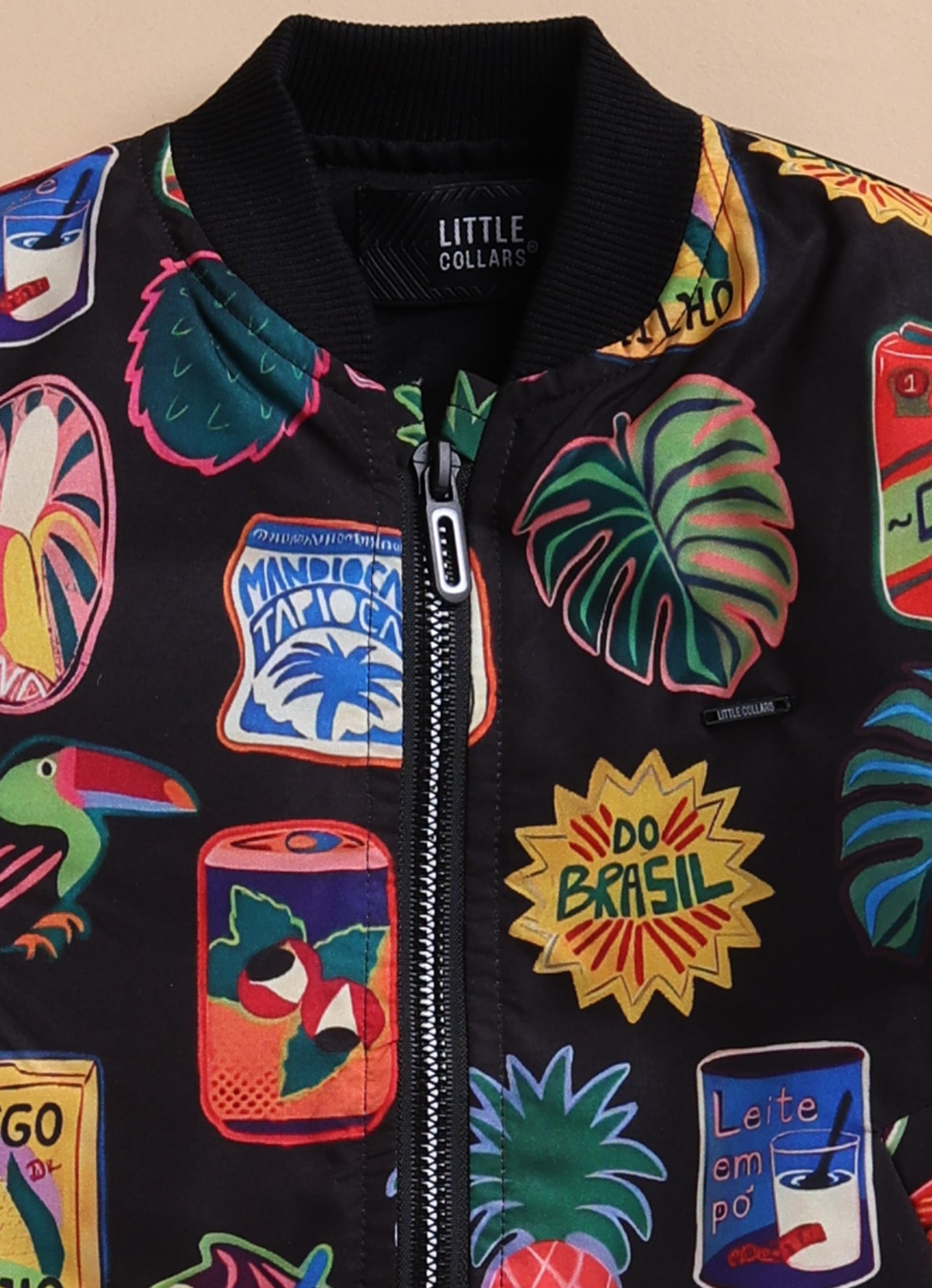 Blended Quirky Graphic Printed Woven Full Sleeves Zippered Sweat Jacket with Printed T-shirt and Pants Casual Set-Black