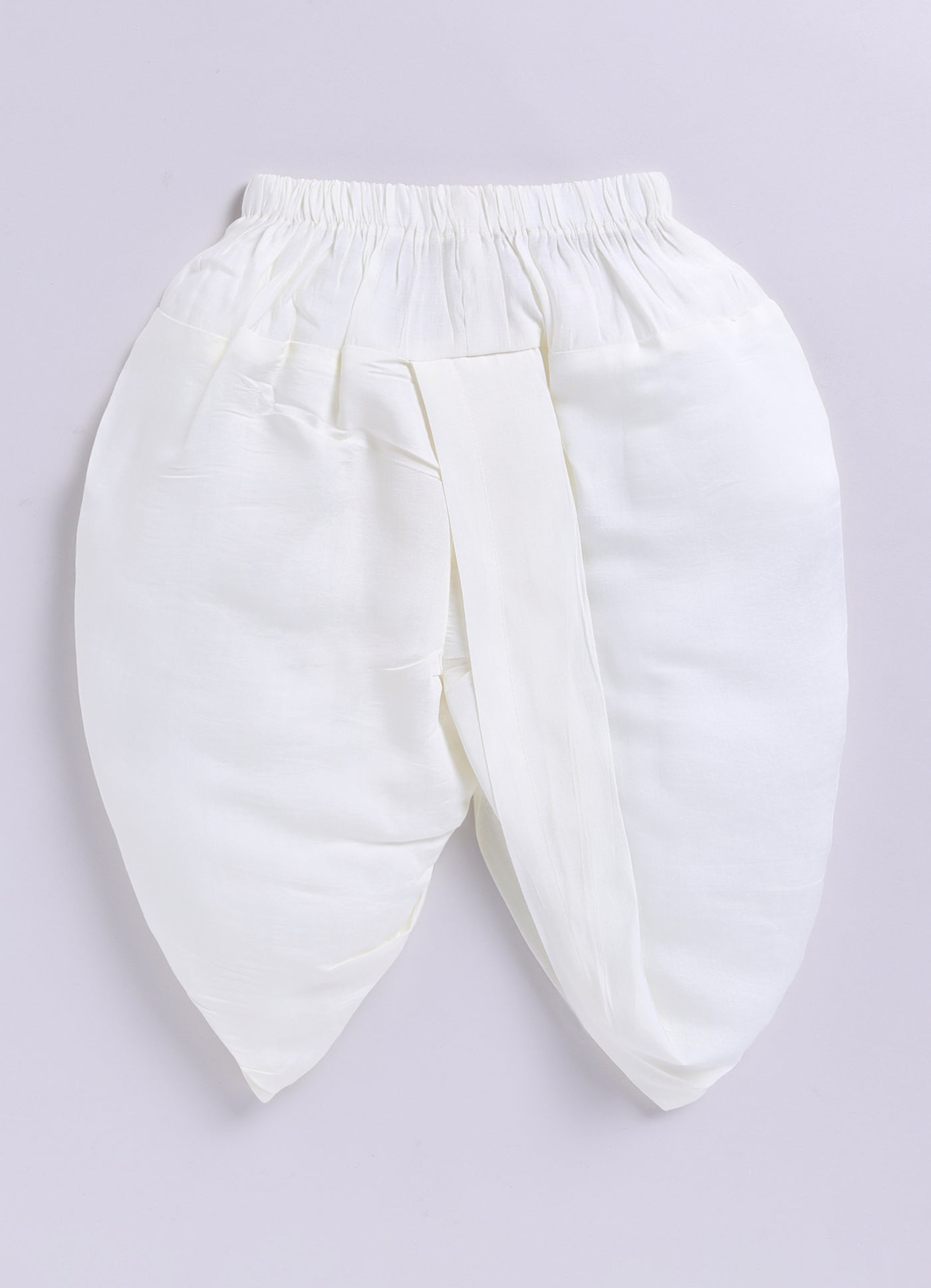 This LITTLE COLLARS fashion-forward silhouette is timeless and aesthetically beautiful. An ideal piece for all Rakhi/Diwali/Ramadan/Indian parties and weddings! Elegant Prince Sherwani Coat has beautiful elephant motif and is paired with dhoti. This set is a perfect combination of opulence with comfort.