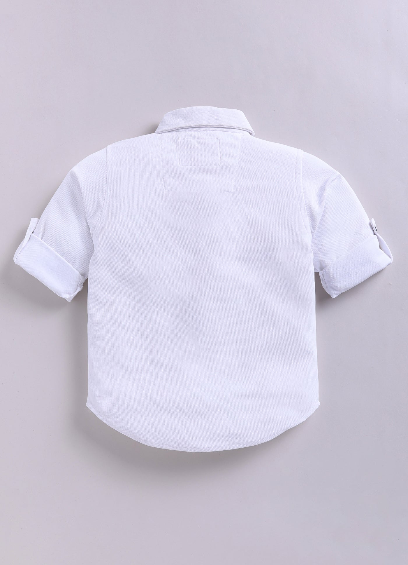 Blended Woven Full Sleeves Solid Shirt Pant with Waistcoat Coord and Bow Partywear Set - Beige