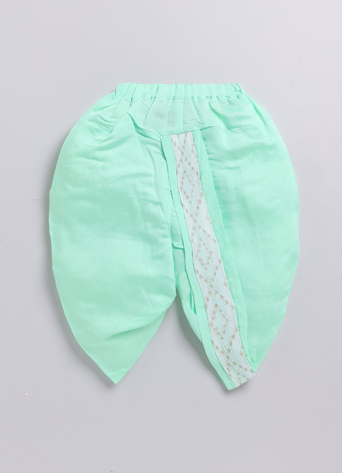 This LITTLE COLLARS fashion-forward silhouette is timeless and aesthetically beautiful. An ideal piece for all Rakhi/Diwali/Ramadan/Indian parties and weddings! Elegant Achkan has beautiful Zari  work and is paired with Dhoti Style pant set. This set is a perfect combination of opulence with comfort.