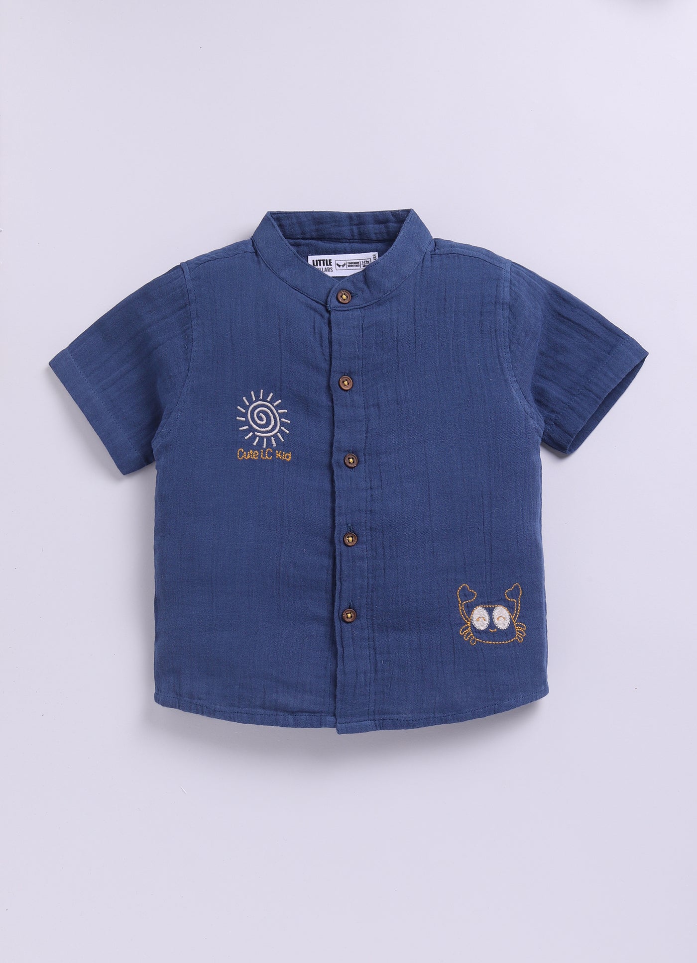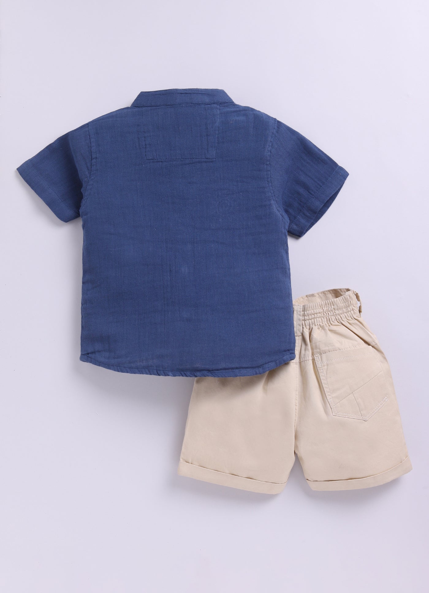 Blue Casual Pure Organic Muslin Cotton Half Sleeves Shirt Half Pant Set