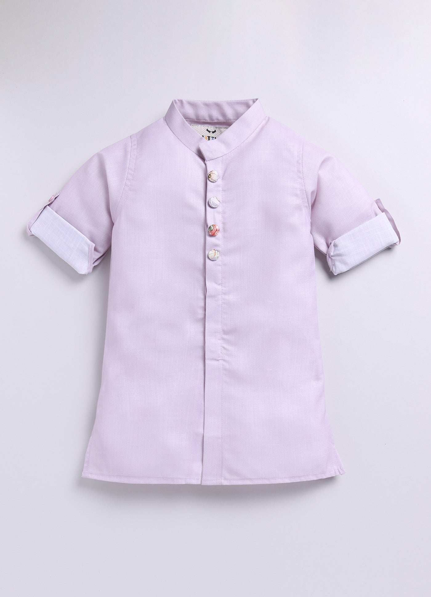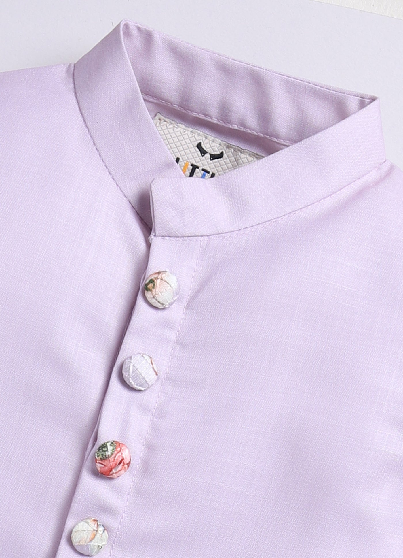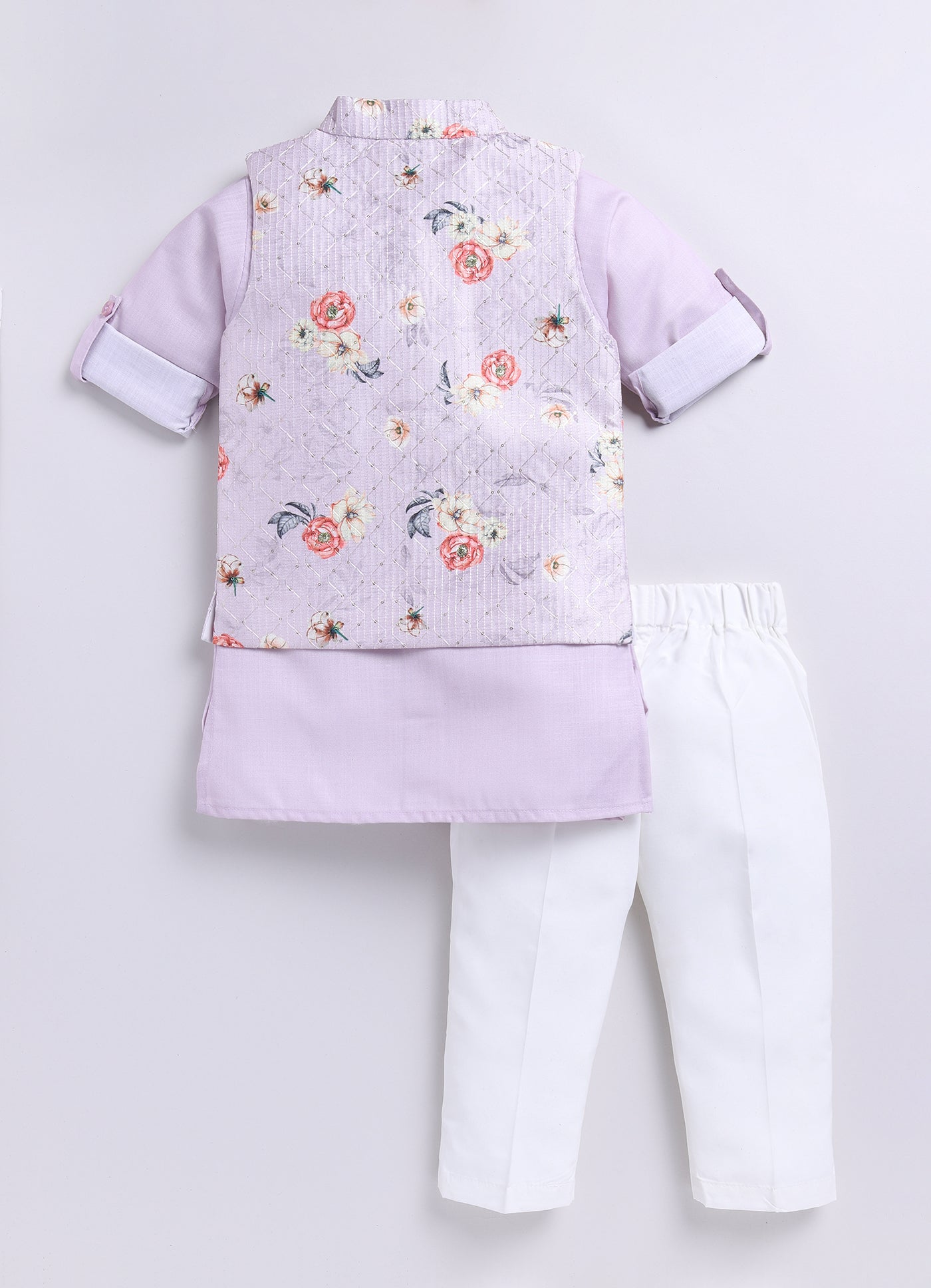Boys Floral Embroidered Jacket Kurta Set-Lavender