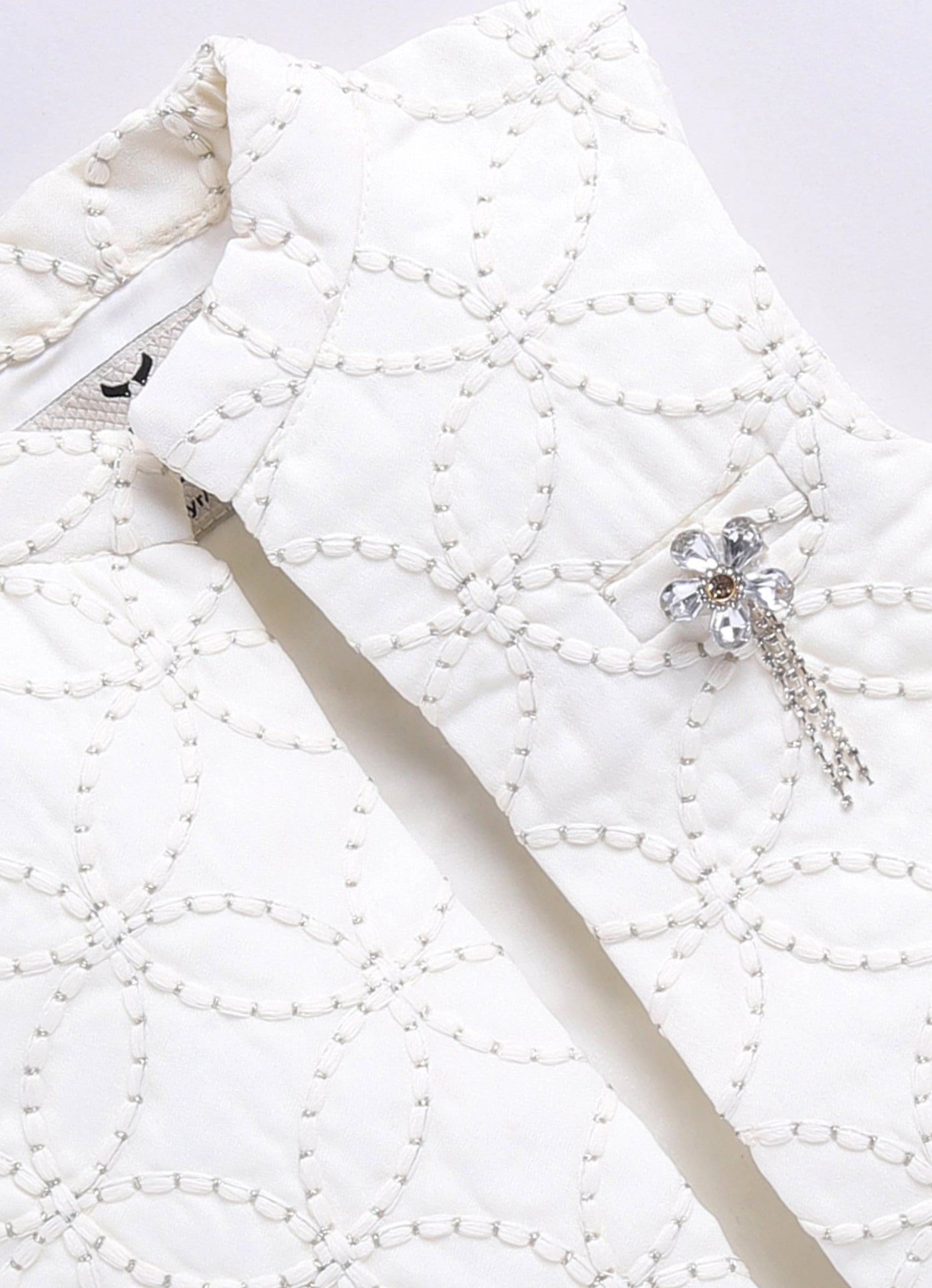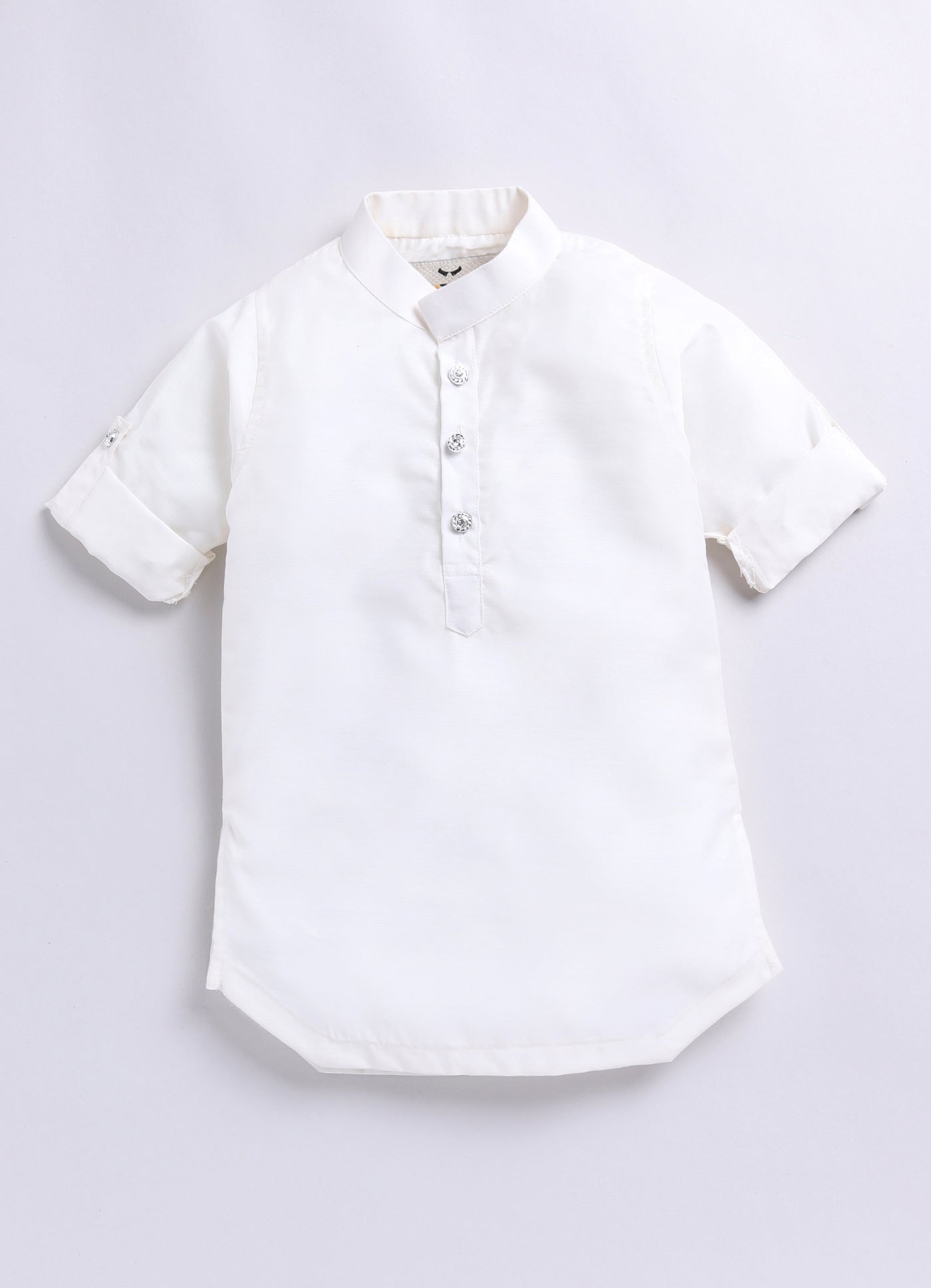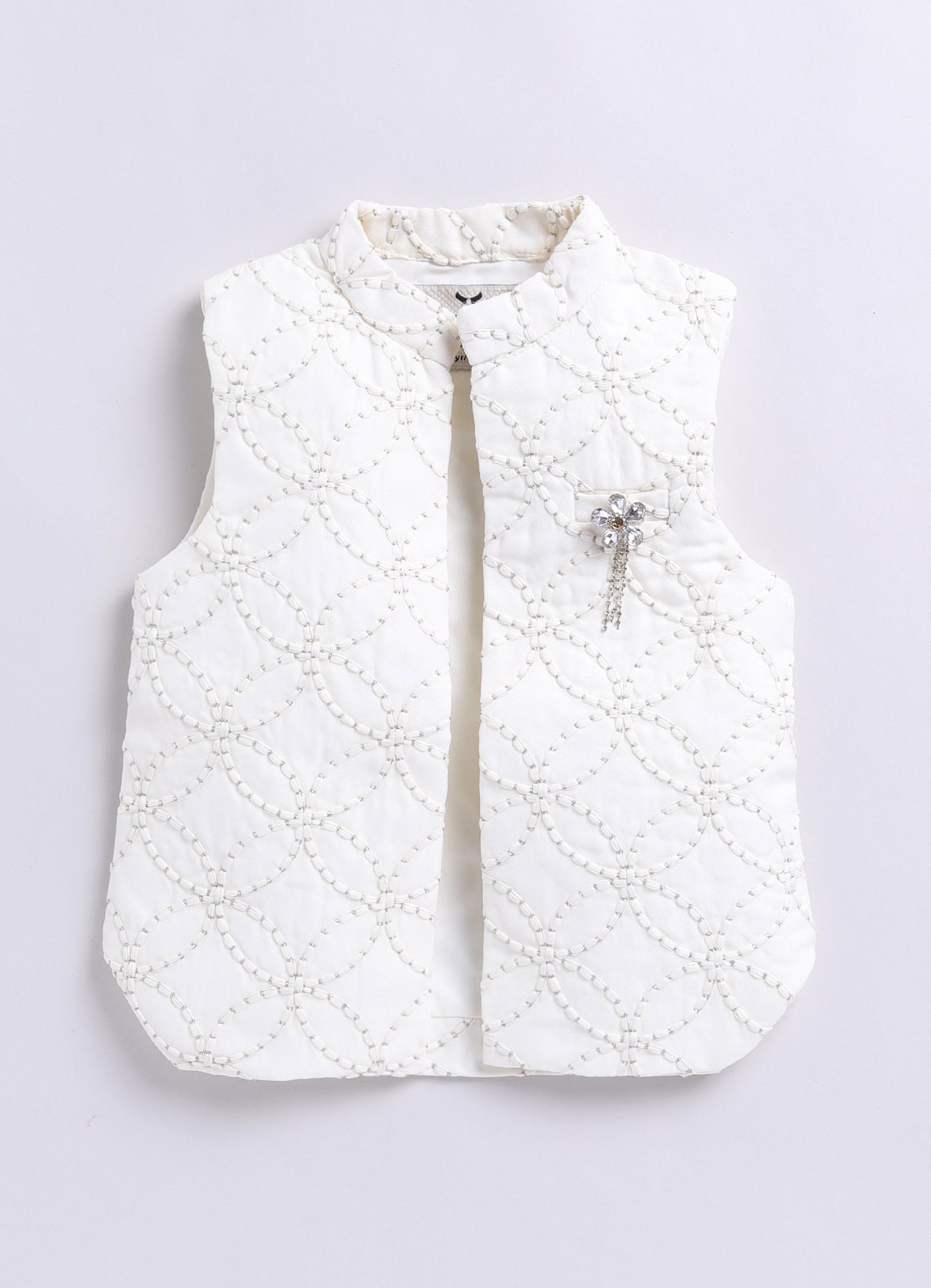 Boys Thread Work Embroidered Cream Kurta Pajama Jacket Set