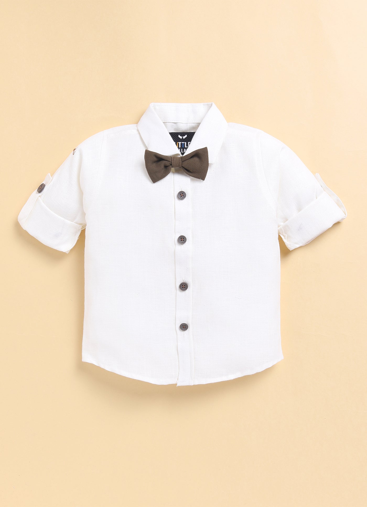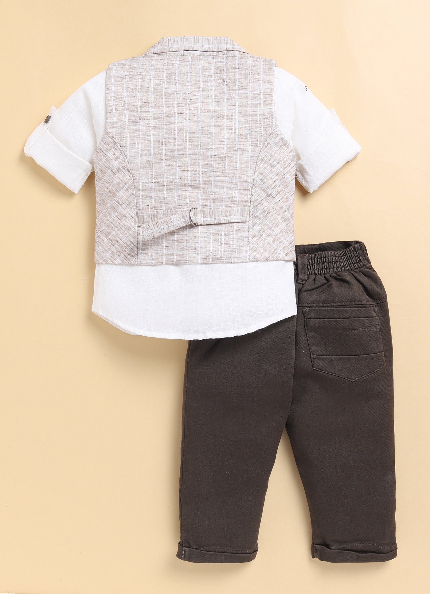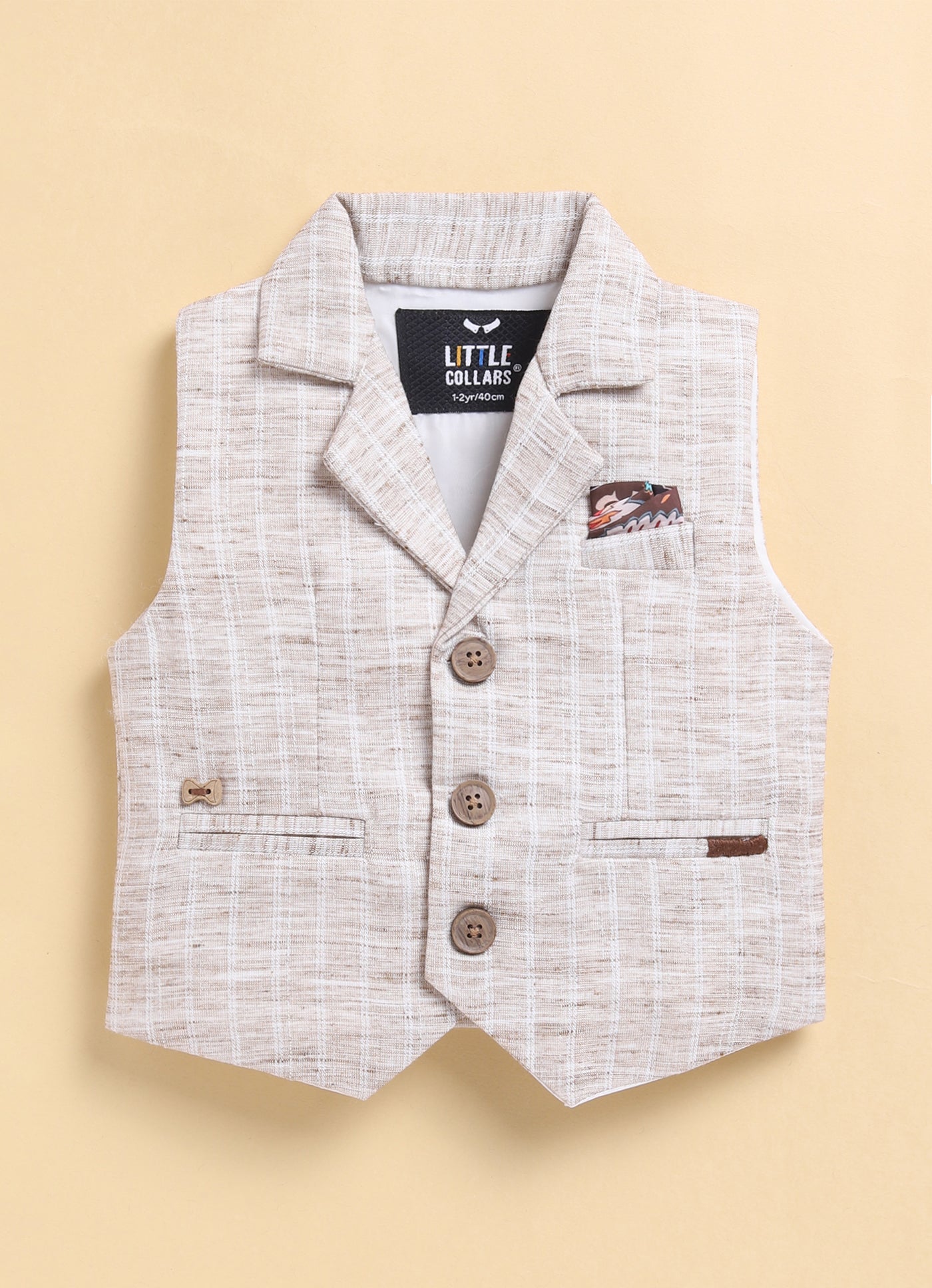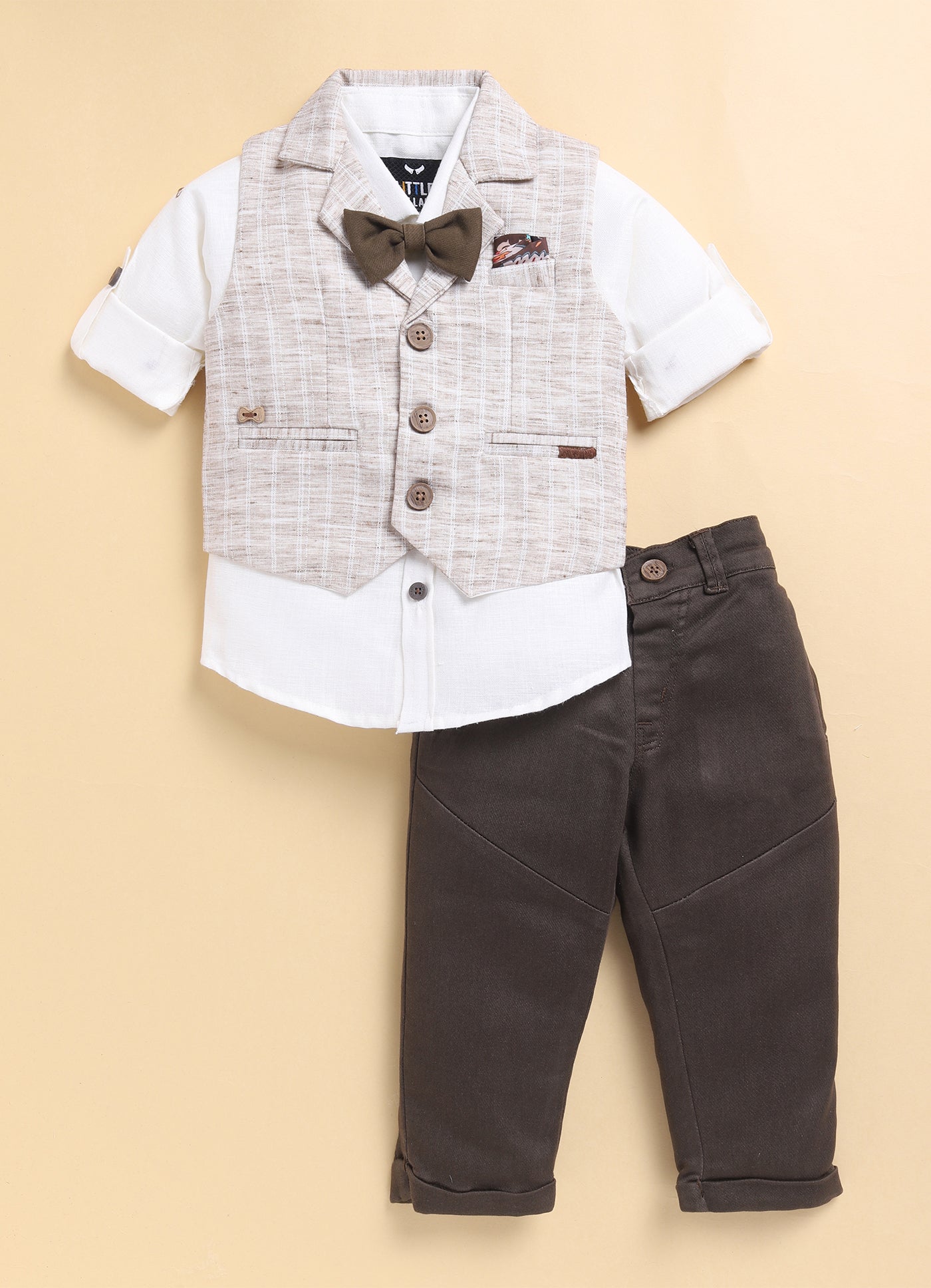 Coffee Boys Full Sleeves Charming and Trendy Linen Waistcoat Set with Stole and Bow
