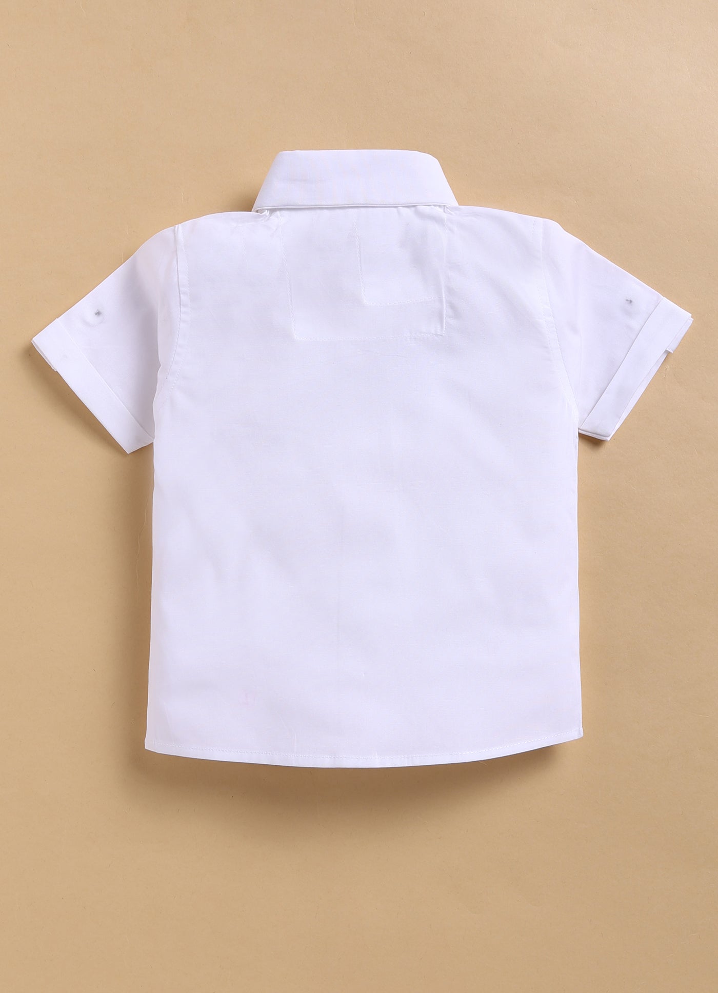 Cotton Half Sleeves Shirt With Coordinating Striped Shorts Suspender & Bow Casual Set- BROWN