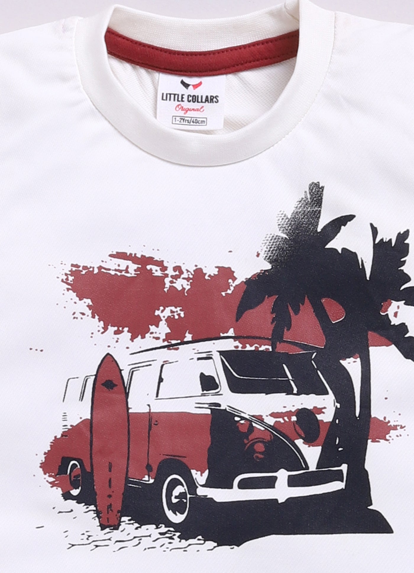 Cotton Woven Full Sleeves Solid Shacket Shirt Pant with Printed T-shirt Casual Set- Rust