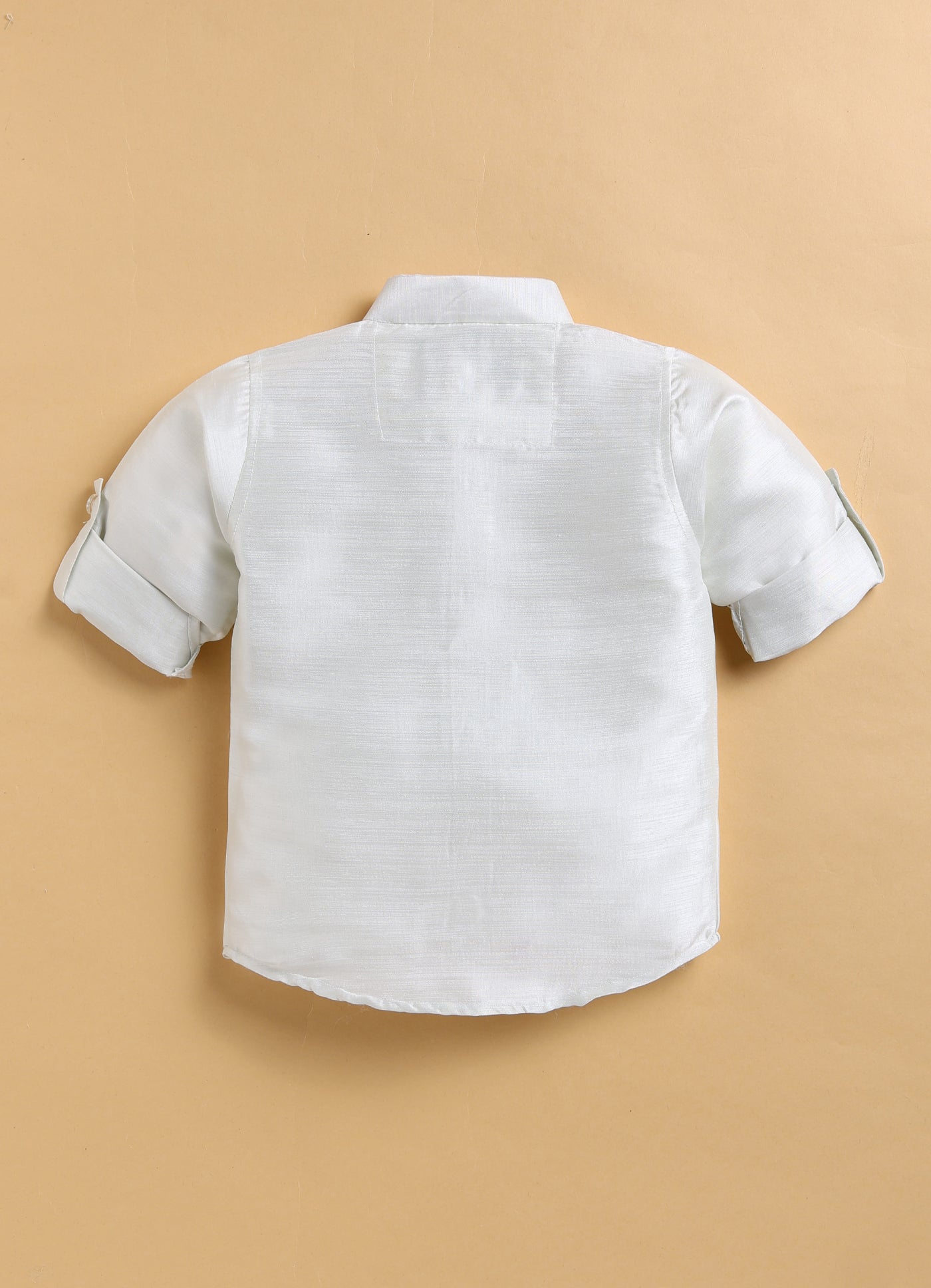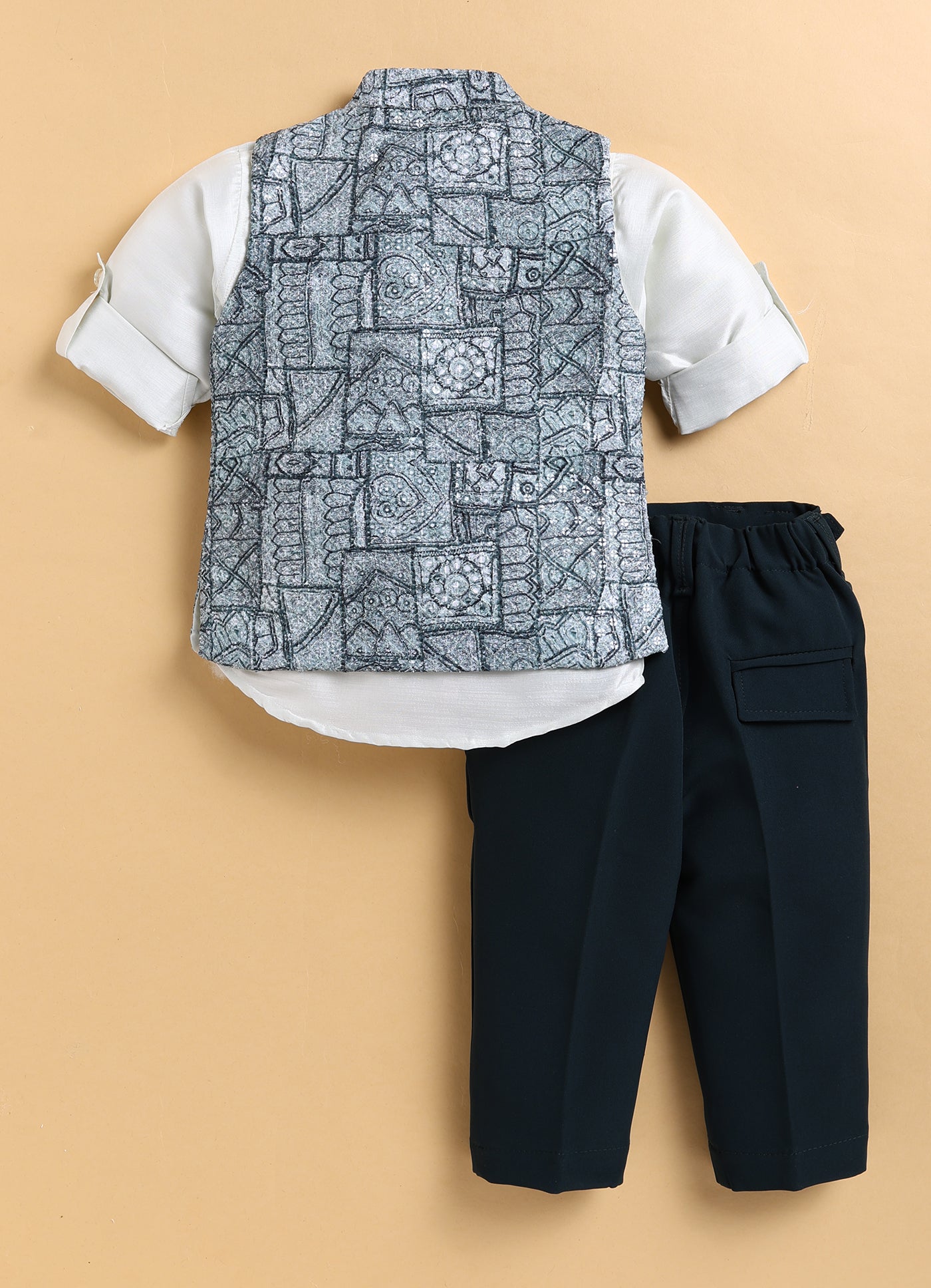 Formal Full Sleeves Shirt Pant and Festive Sleeveless Printed Embroidered Nehru Jacket Indo Western Set- Green