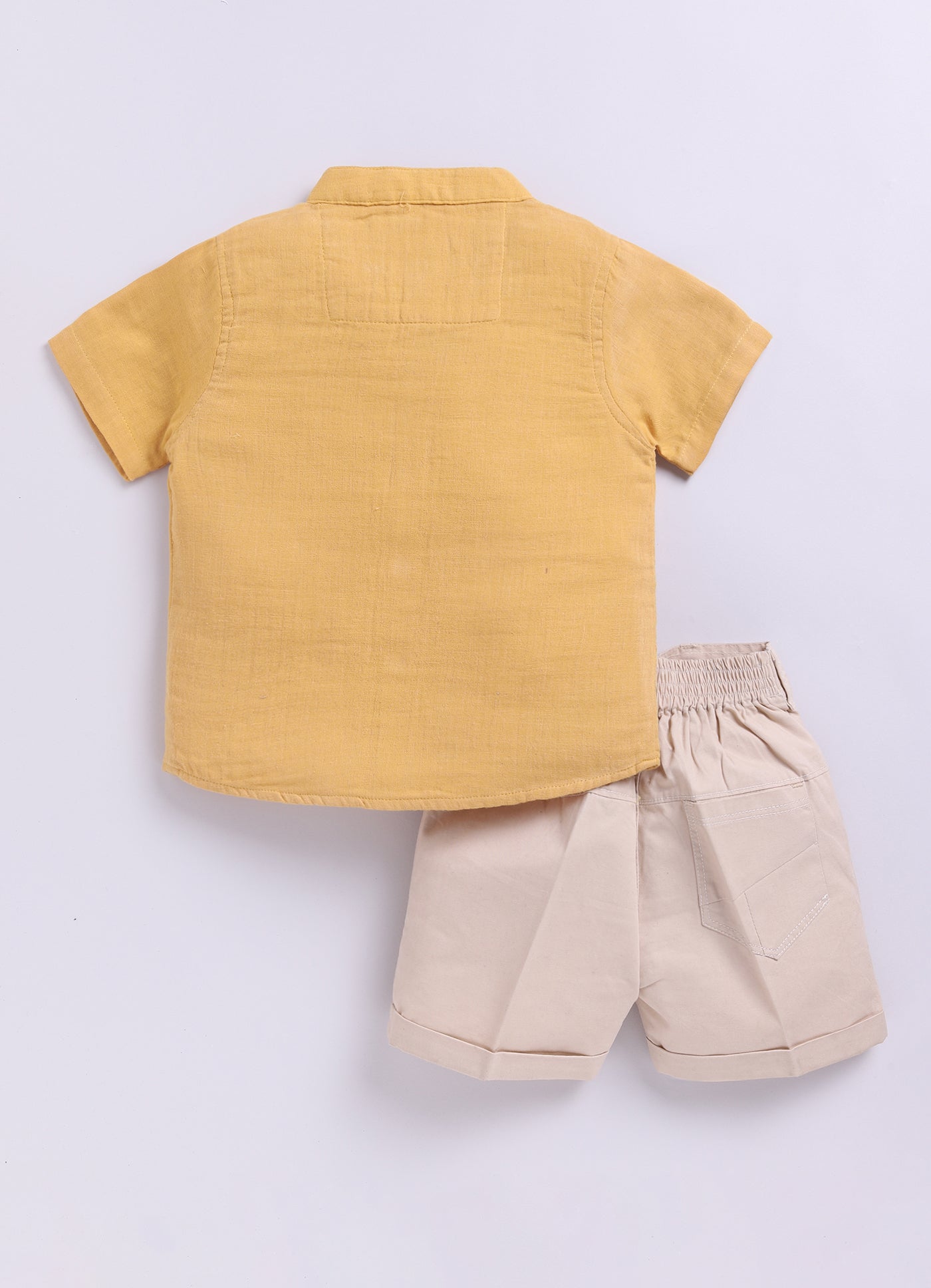Mustard Casual Pure Organic Muslin Cotton Half Sleeves Shirt Half Pant Set