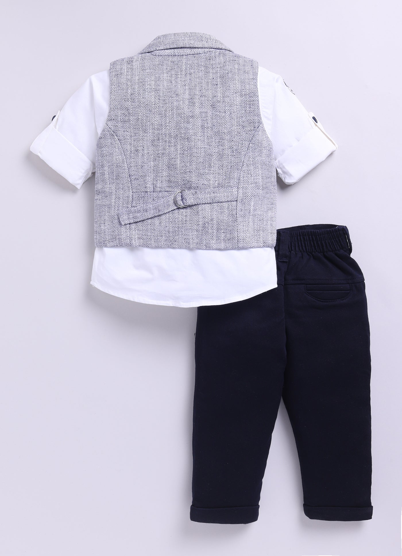 Navy Adorable Woven Waistcoat Full Sleeves Shirt Pants Set with Bow