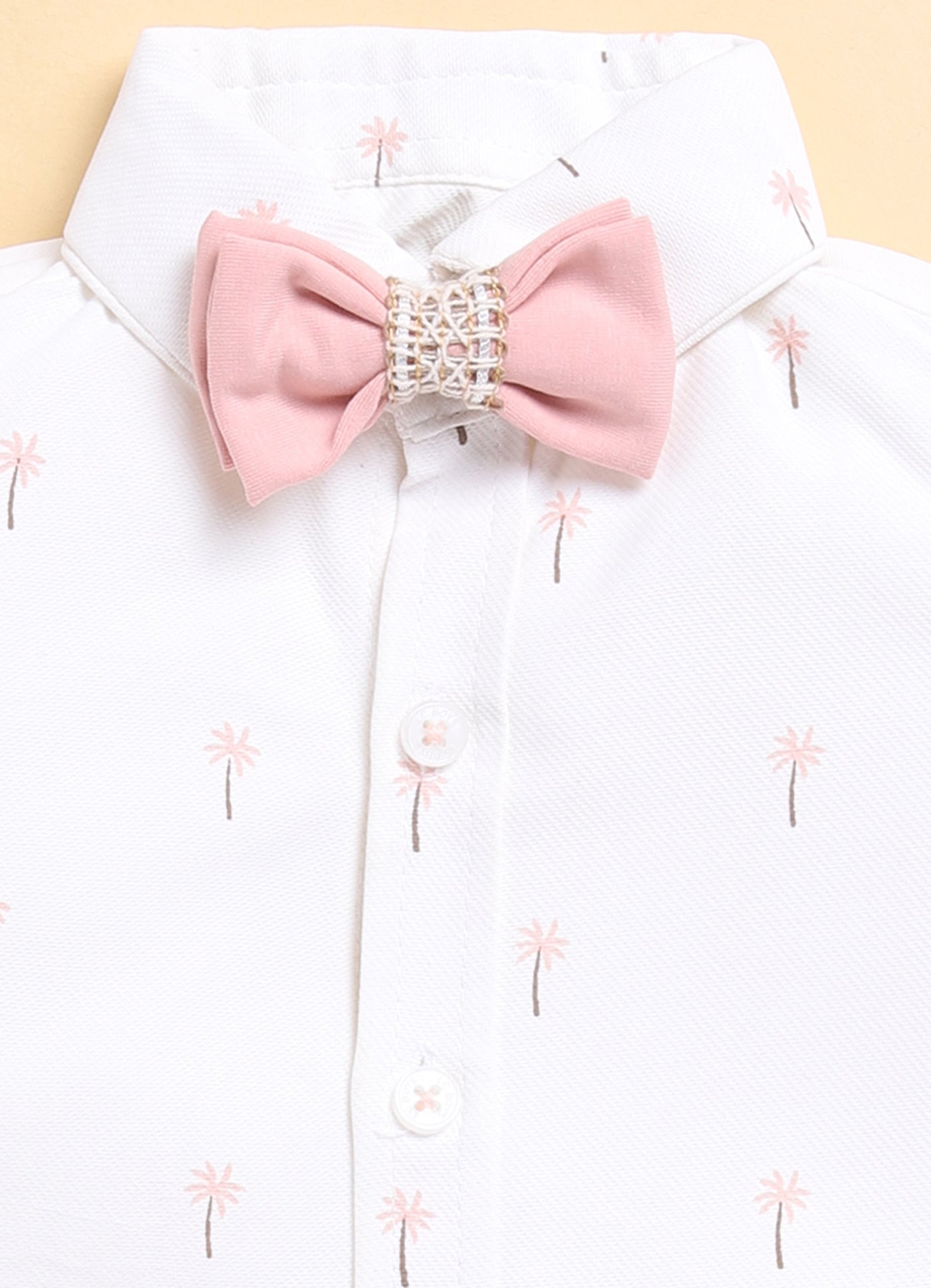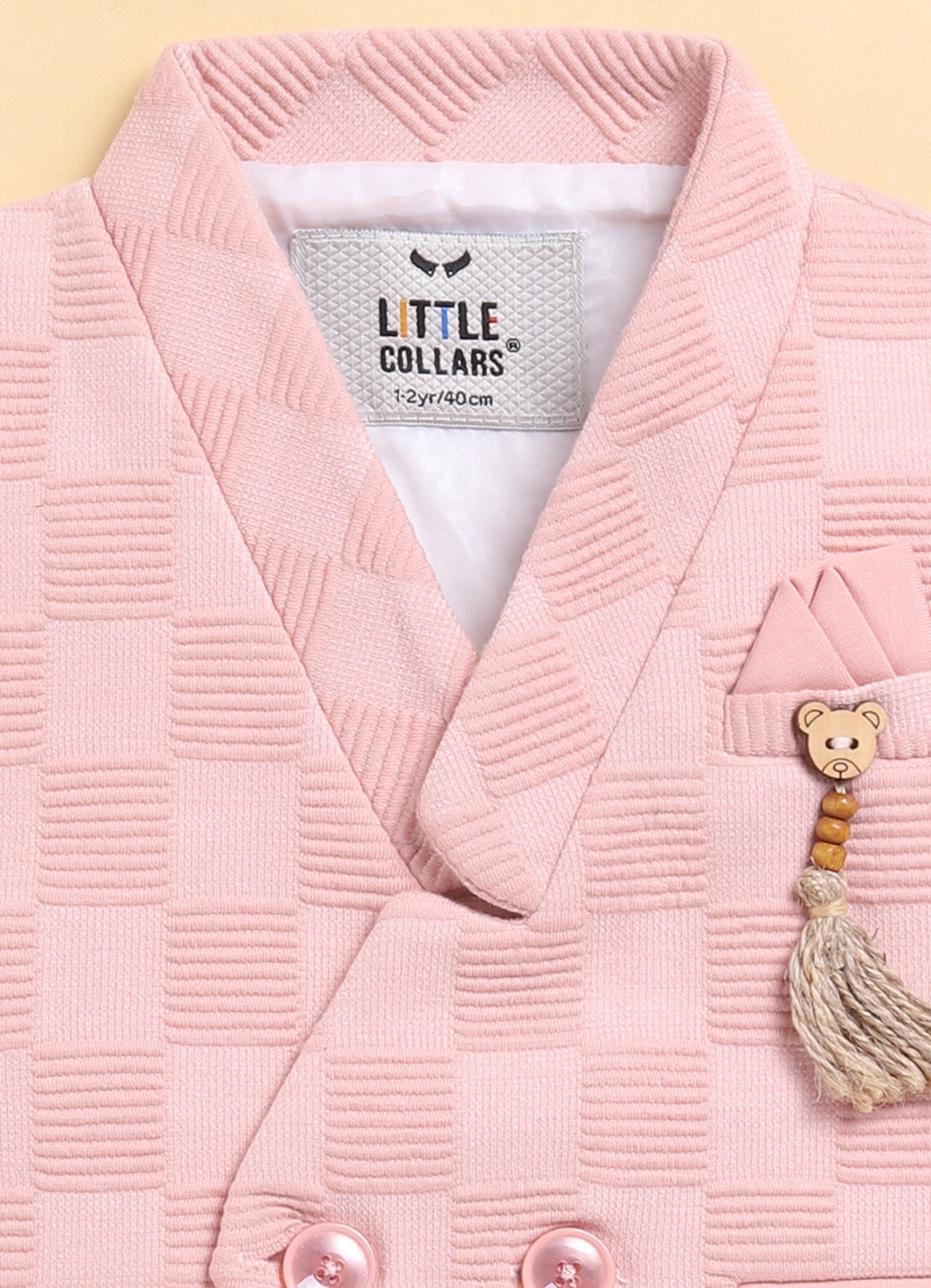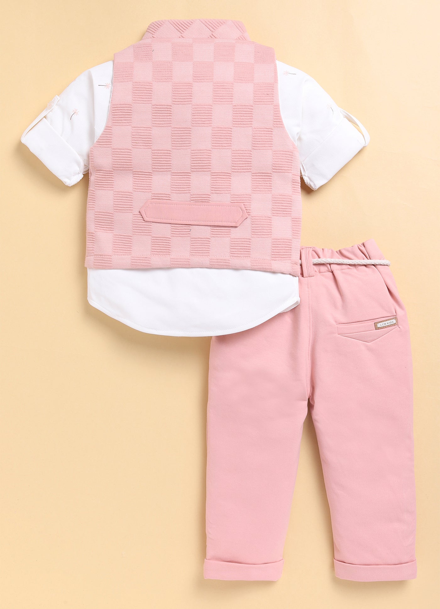 Peach Adorable Jacquard Waistcoat Full Sleeves Shirt Pants Bow Set for Boys