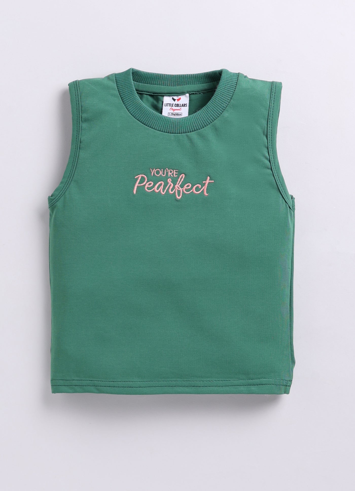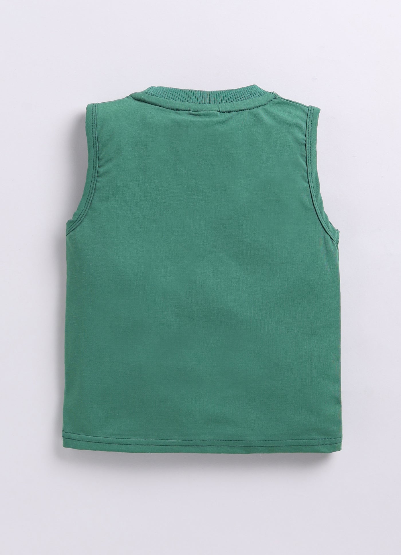 This stylish and cozy outfit features double cloth shirt details. Sleeveless printed t-shirt is fun. Shorts with pocket accents for a trendy and functional look. Perfect for a casual yet fashionable birthday wear/ outer wear look!