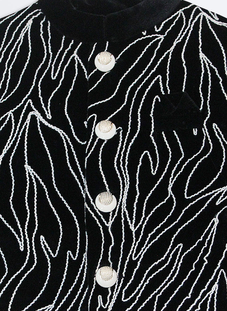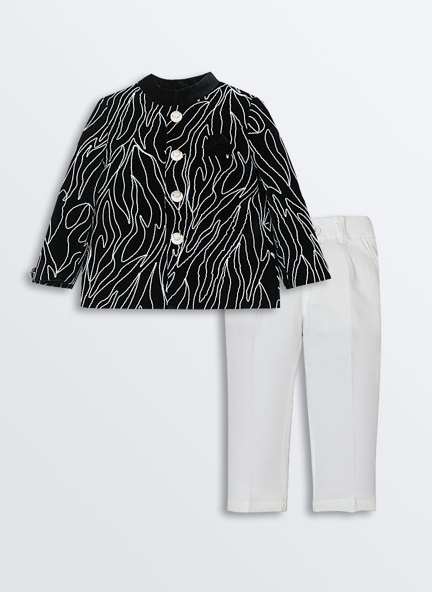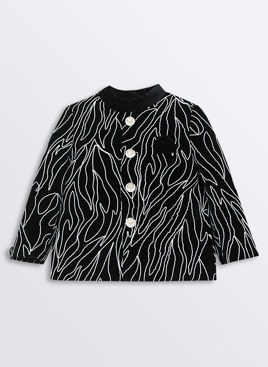 Woven Full Sleeves Cord Work on Velvet Formal Bandhgala Pant Ethnic Set- Black
